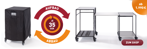 Dank eines intelligenten Klappmechanismus, können die Wagenmodule inklusive den Ablagen und der Reling in der eigens entwickelten Garage ihren Platz finden. Durch Flexibilität und die modulare Bauweise kommt sie überall da zum Einsatz, wo man sie gerade braucht. Die OMK ist selbst im aufgebauten Zustand noch verschiebbar.